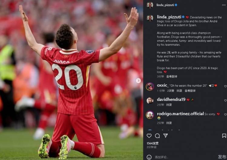他留下了年轻的妻子鲁特和三个可爱的孩子,令人心碎。若塔自2020年起就成为了利物浦的一员,他的离世令人痛心。 ?